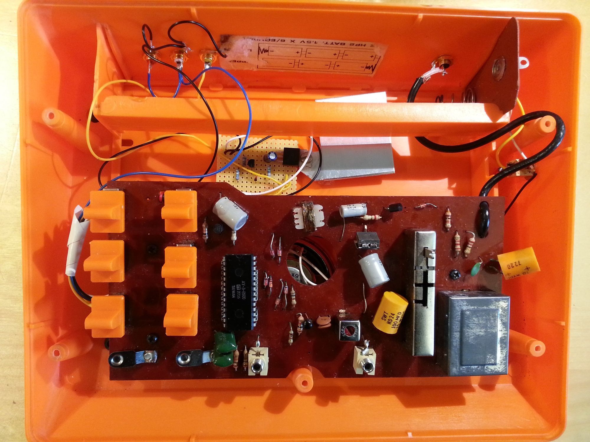 Ah yes, Binatone, that stalwart of the “well, it does the job but it’s nothing special” area of the electronics market. Binatone, like many of its contemporaries, had bought into the AY-3-8500 integrated circuit. This little beauty from GI packed a handful of Pong-a-likes onto a single chip that handled input, switches and all video and audio output. Just a stick a few basic components around it to make sure it behaves itself and boom, you have a games console. Yes, 1977 and GI already had SoC nailed. This led to an avalanche of over 200 near-identical looking products that all played the exact same games.