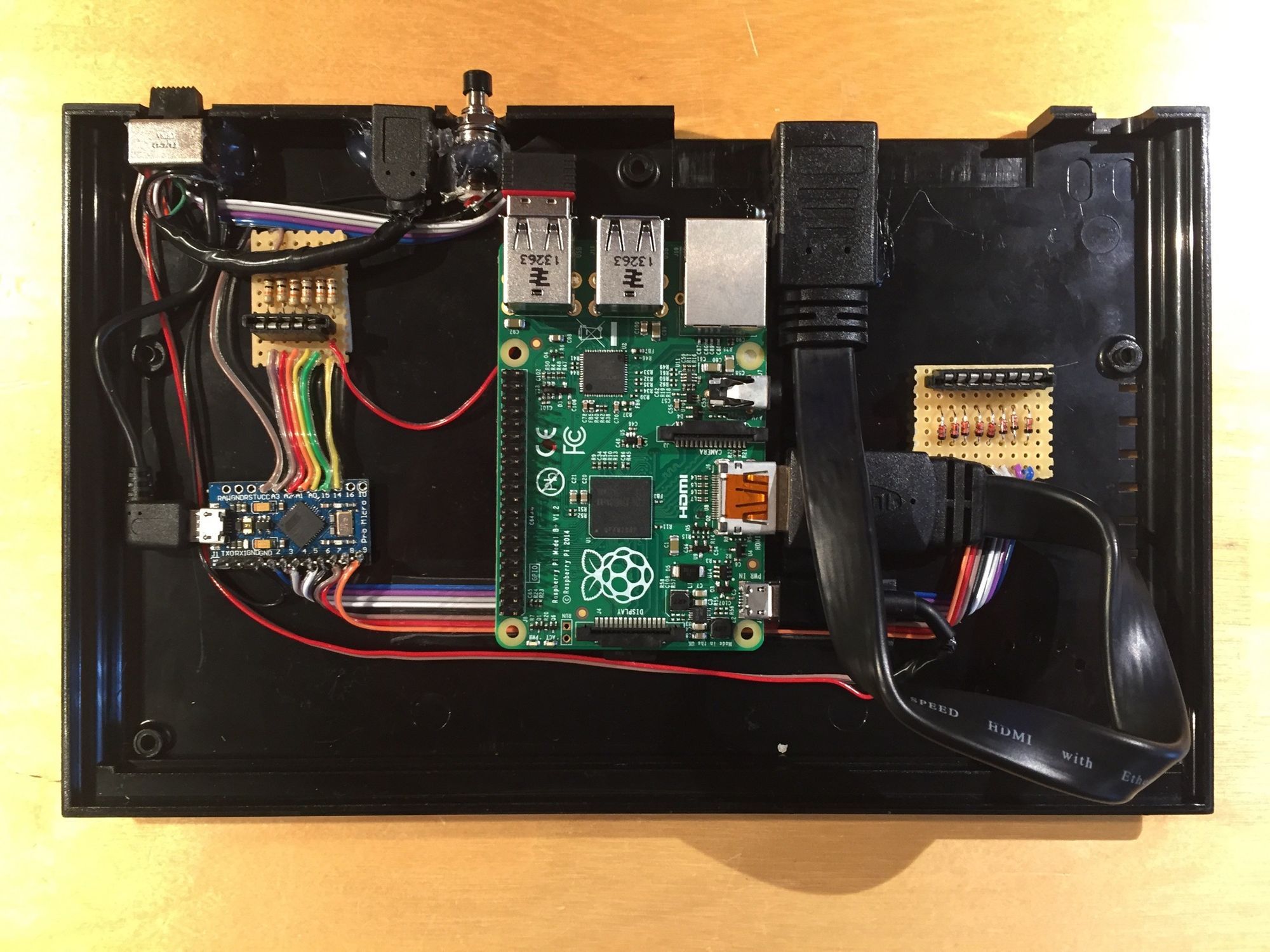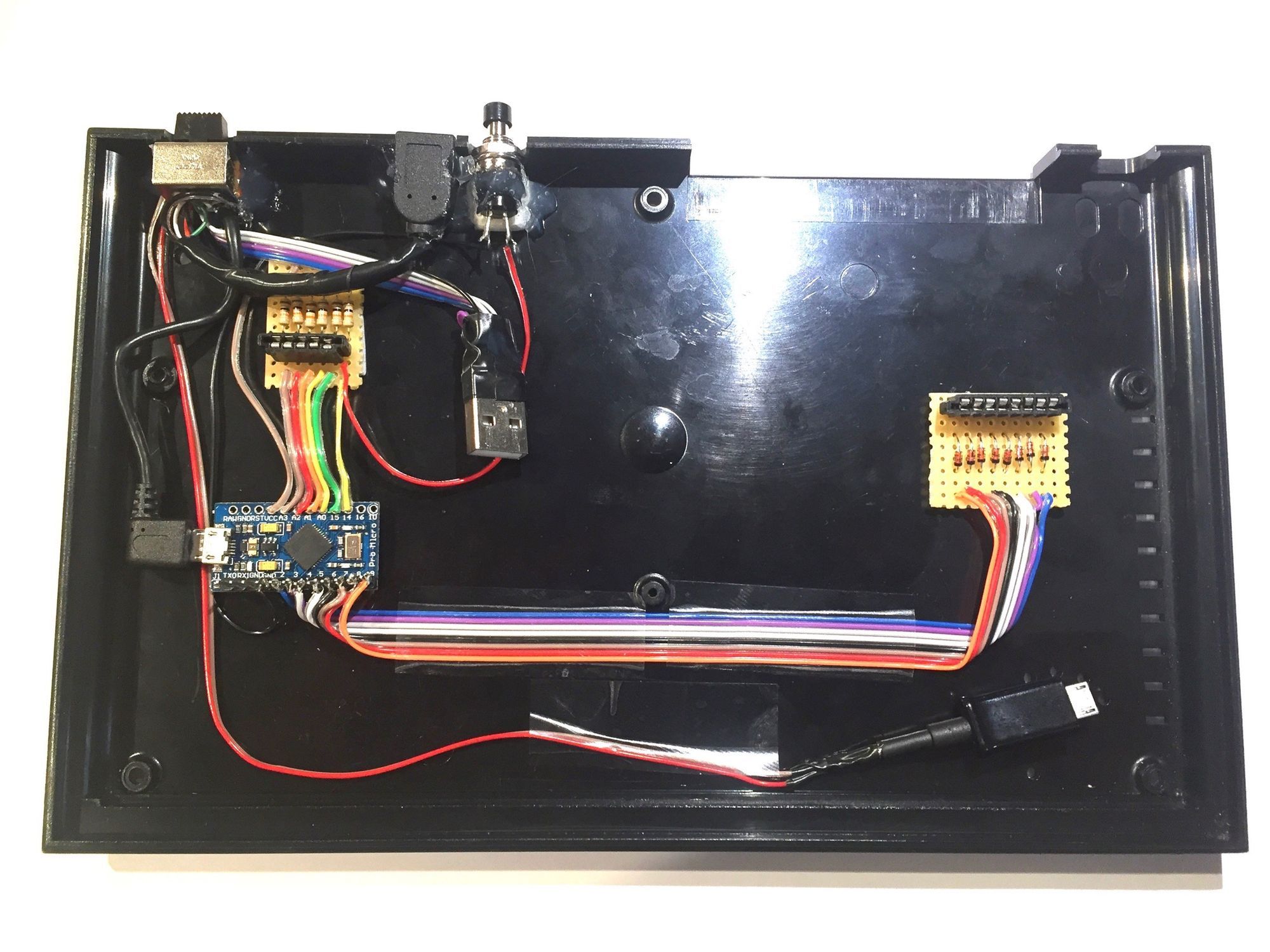 It was a real pain to put together. I bought some cheap short cables from Amazon to provide connectors (I’m no fan of soldering at that level and USB has standardised wiring colours). To make everything fit snugly a lot of things had to be stripped down and re-soldered. It took a couple of attempts to get it right, but the final version tested out ok.