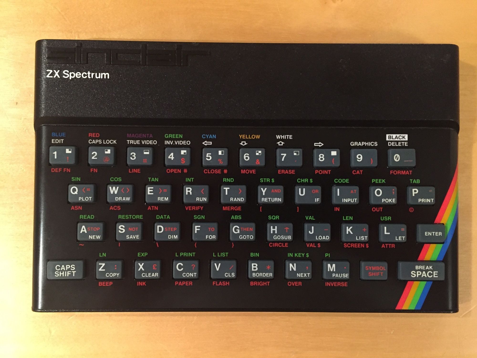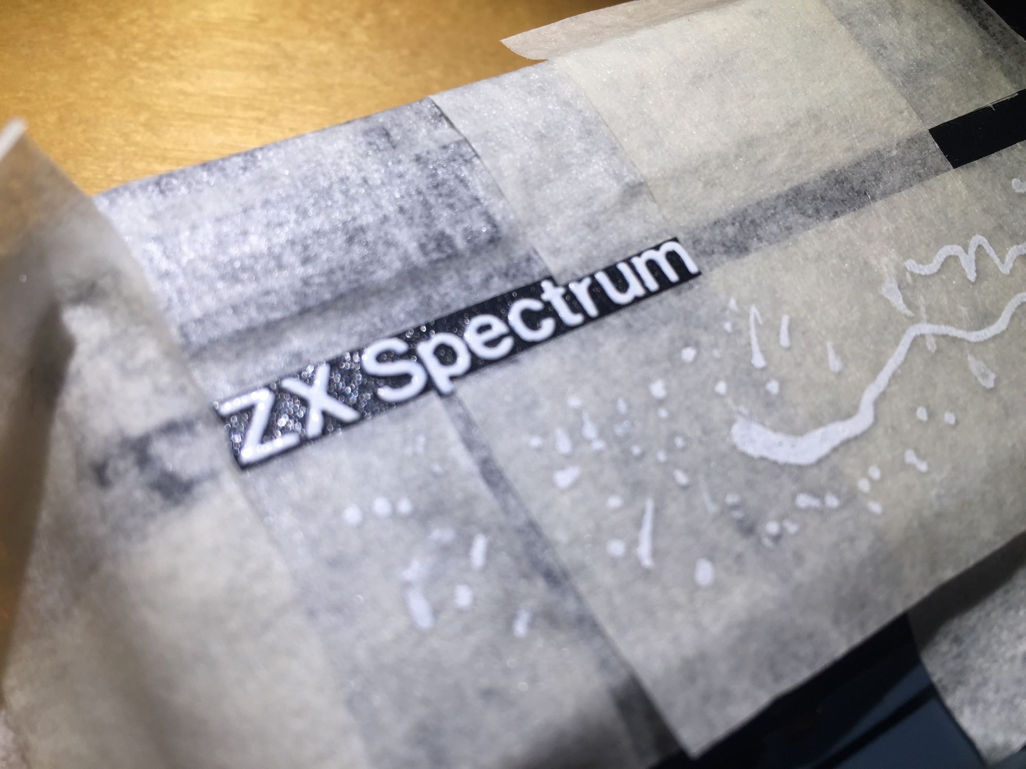 And we’re done. Oh wait, the case itself is looking a little tired. Lets replace the scratched faceplate with one from SellMyRetro (£18) and re-ink the ZX Spectrum legend with an ultra-fine paint pen.