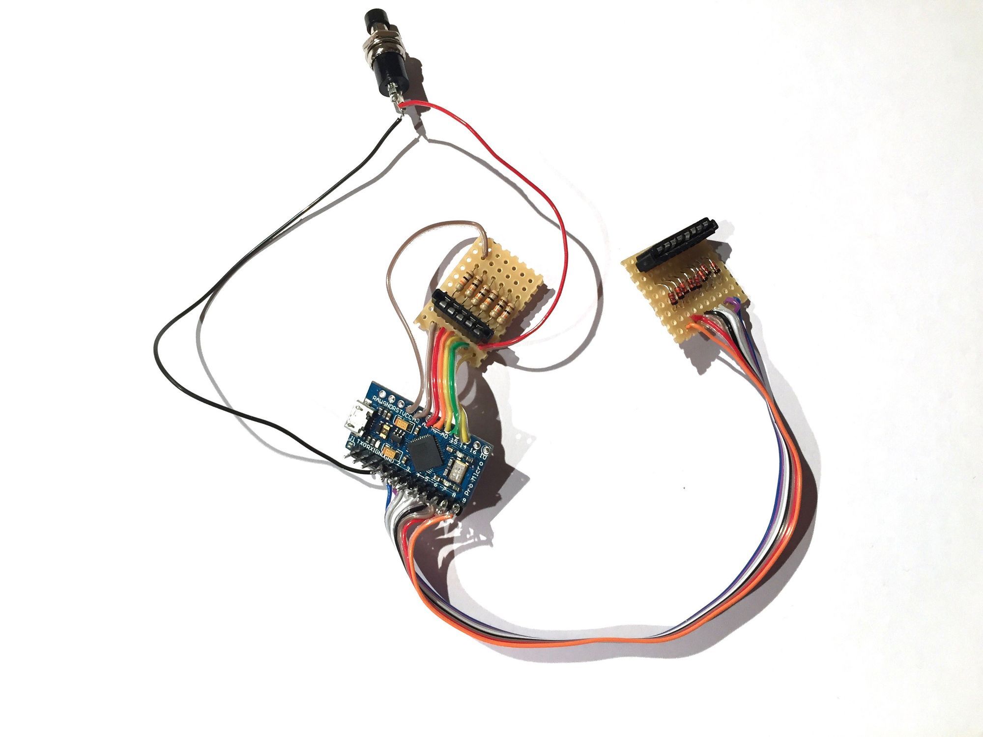 Solder each line to the Pro Micro (this is a little more delicate) as shown in the diagram. Input names can vary (this is the SparkFun version) on different controllers. So long as it’s going into a pin that can be configured as a digital input, you’re good.
