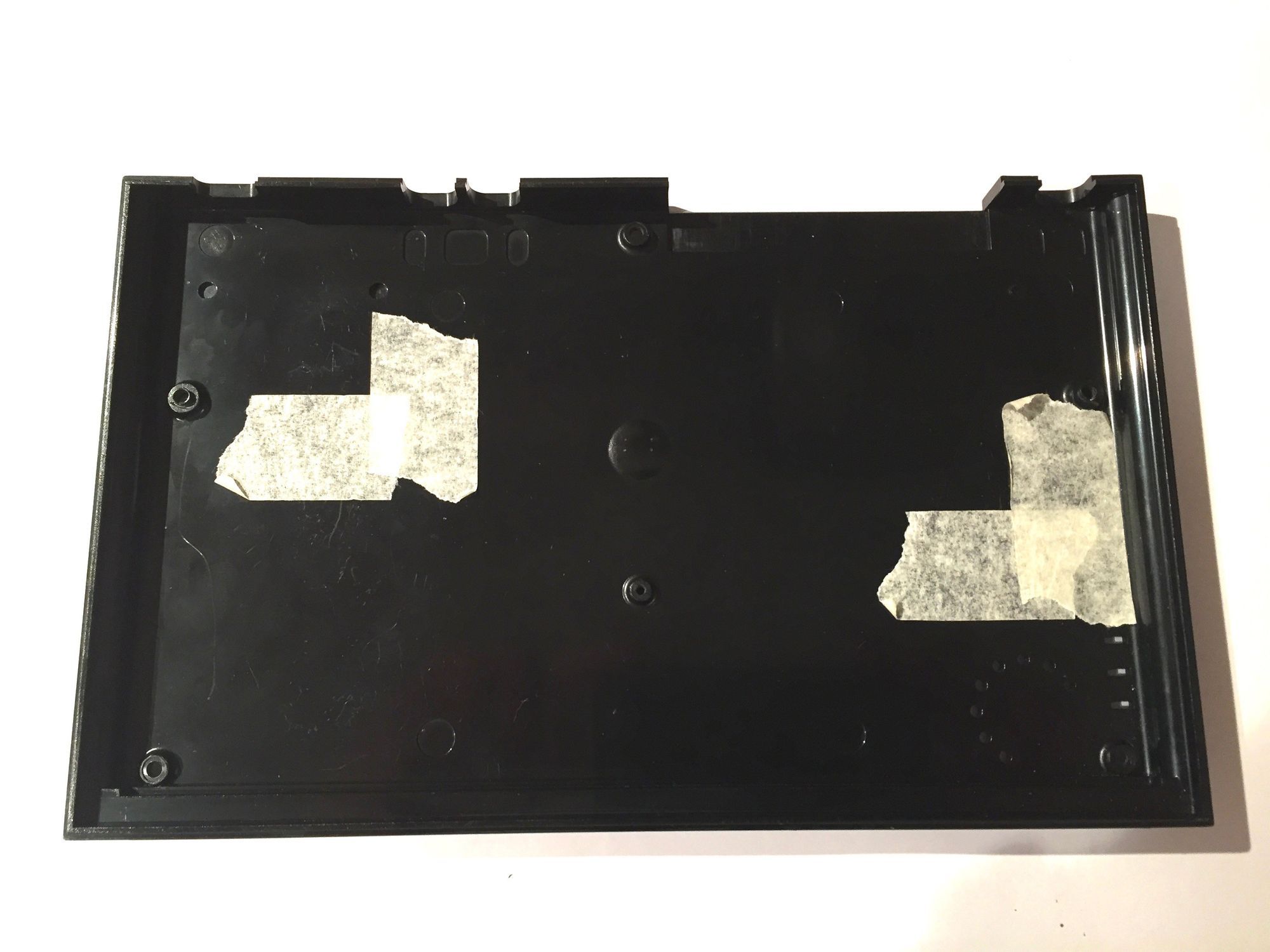 The first step was to give the casing a darn good clean, then cut up two pieces of stripboard; one for each membrane connector. It is very important you carefully work our where to place these on the case, as the ribbons from the membrane must not be put under any stress, such as meeting mortgage payments or awkward social situations. Ideally, take your cue from a ZX Spectrum motherboard and line them up accordingly. My KB1 connector ended up a little higher in the case as the ribbon had been trimmed. I then marked out the position using some masking tape.