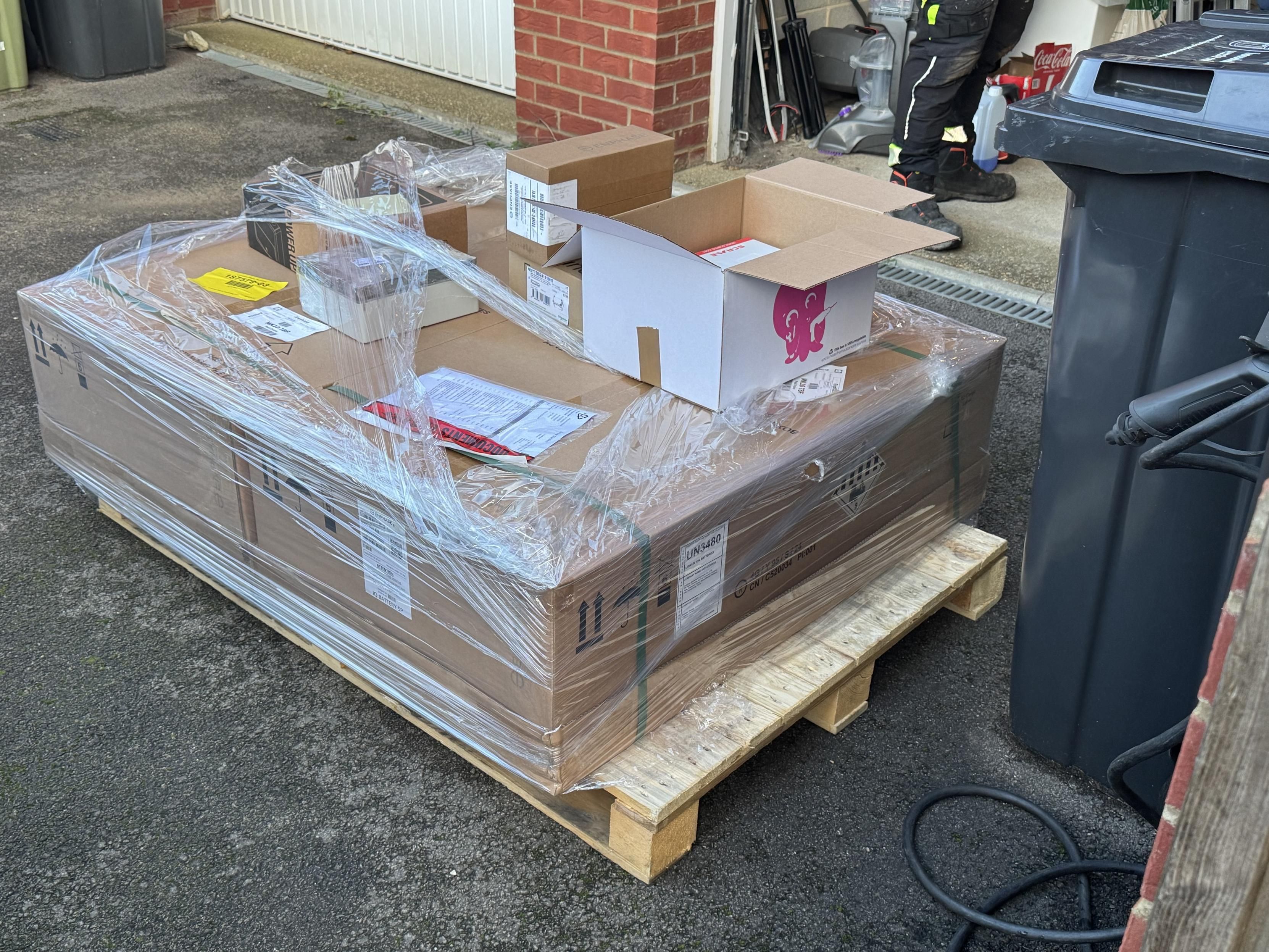 A WILD PALLET APPEARS! Big day at Evans Towers as we have 10kWh worth of batteries installed. Gonna capture all those delicious photons.